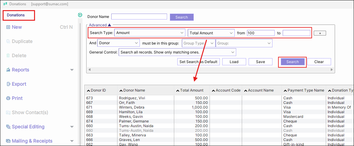 To select multiple criteria in the Advanced Search panel, click the plus button next to the Search Type drop-down menu and then choose the appropriate connector. And select another criterion on the second Search Type drop-down menu that has appeared. Then hit Search to view the results.