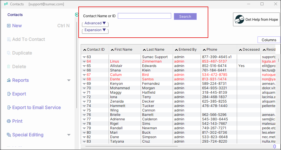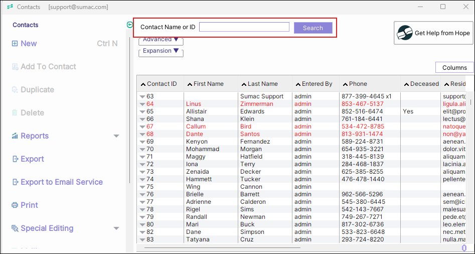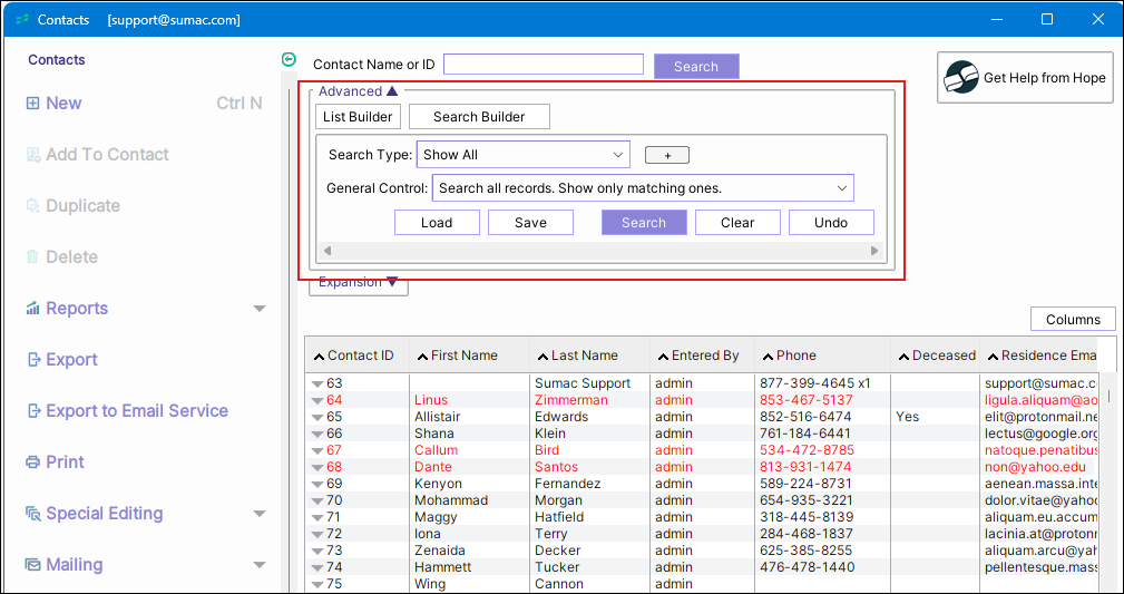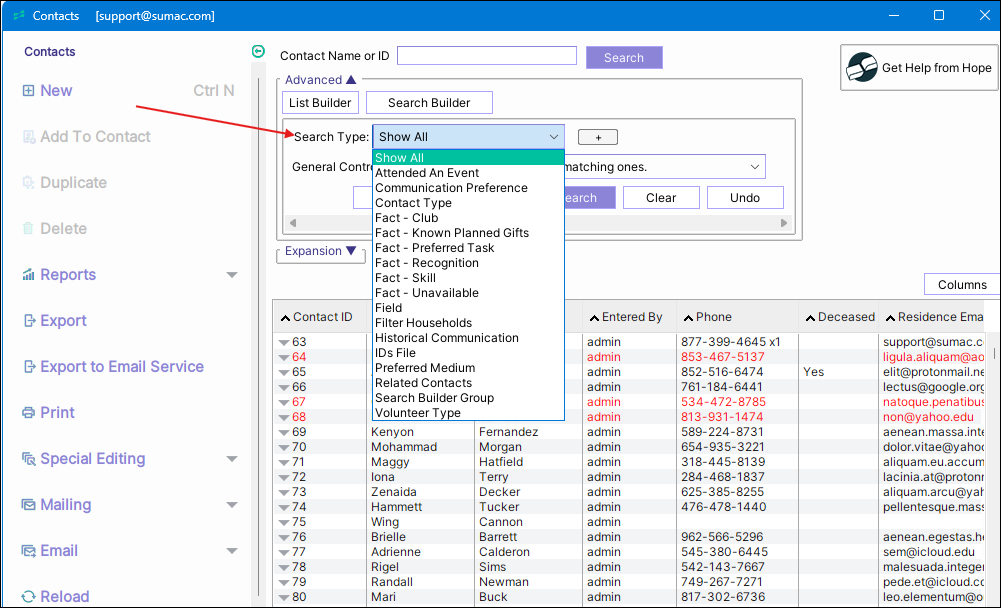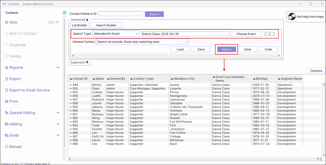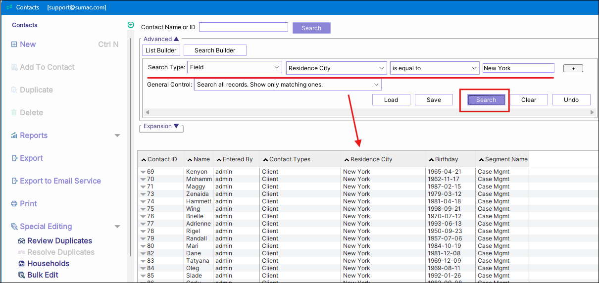 choose the Communication Preference: Newsletter. Click Search – and Sumac finds