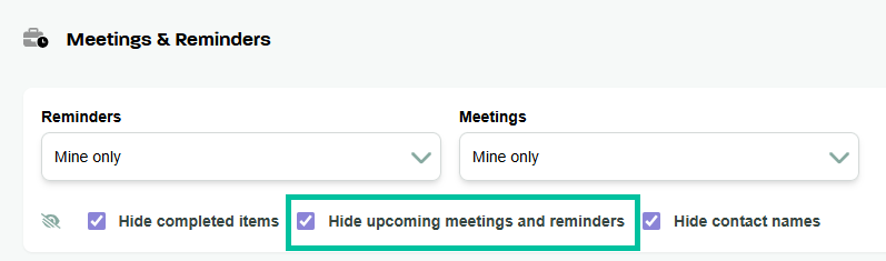 Note: Upcoming meetings and reminders will be hidden by default.