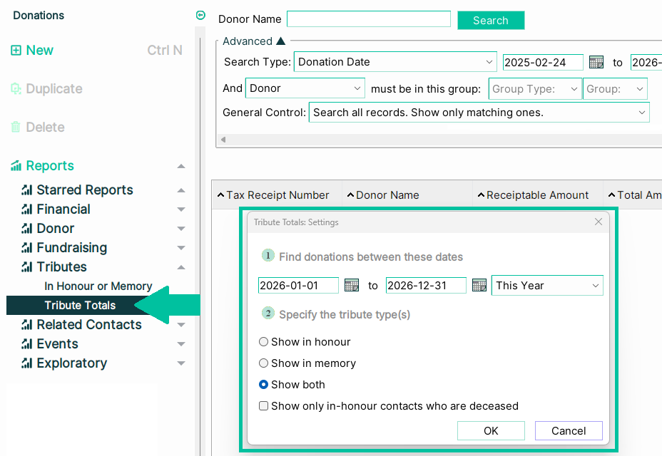 The previously removed “In Honor Totals” report has returned — now called “Tribute Totals.”