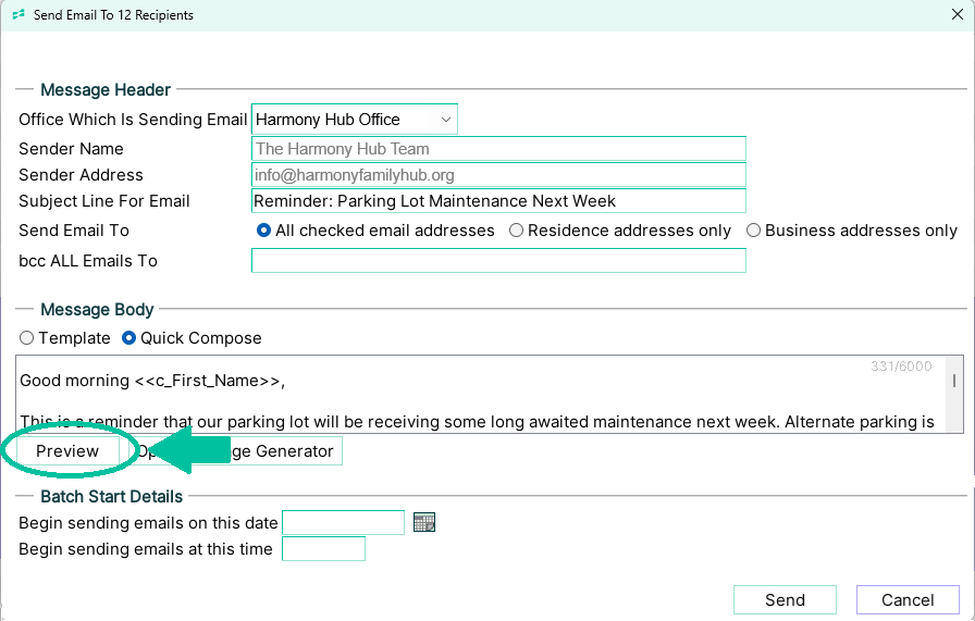 When sending a bulk email using Quick Compose, you’ll now see a Preview button.