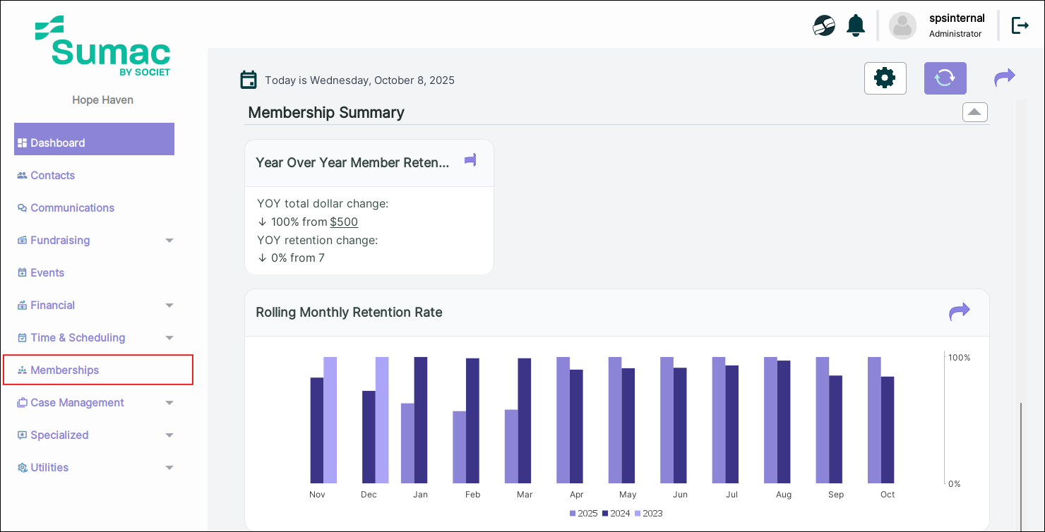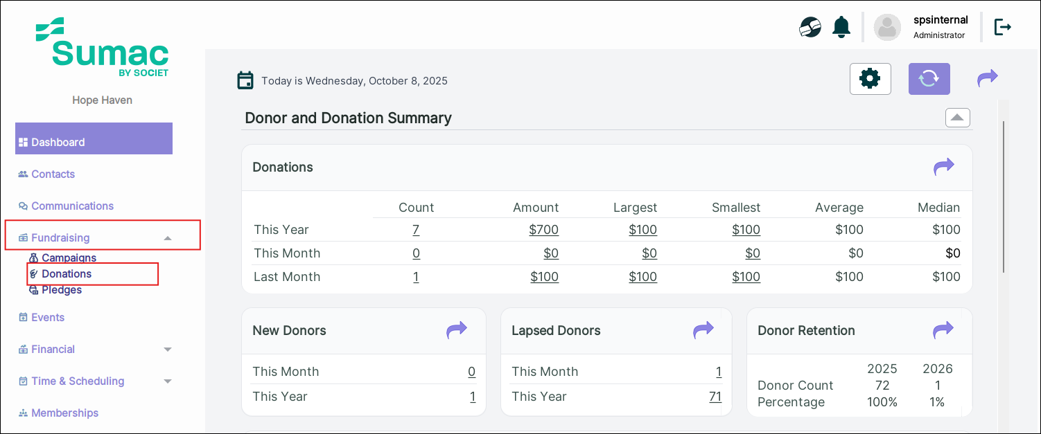 On the Sumac Dashboard, expand Fundraising and click Donations.